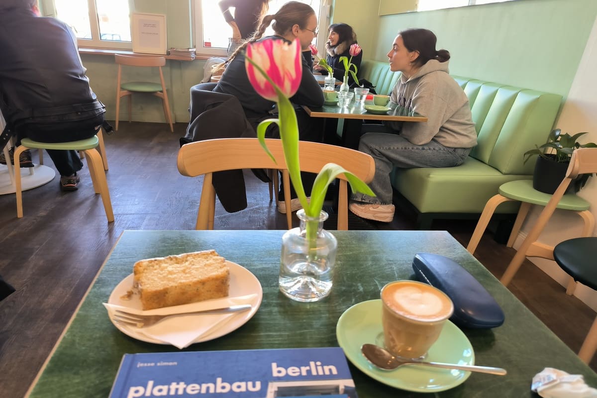 Ottimo caffè e pasticcini sul canale di Maybachufer nel quartiere di Neukölln, la parte che da anni è stata soprannominata Kreuzkölln, perché al confine con Kreuzberg. Un luogo perfetto per rilassarsi.